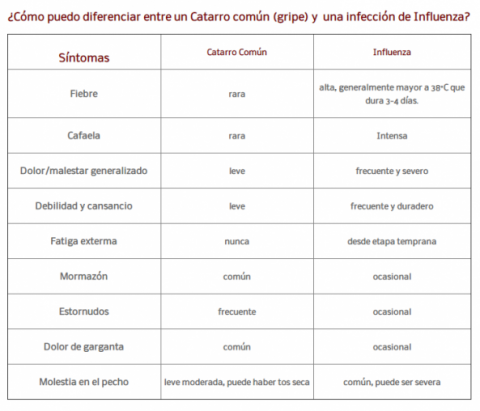 Aqui una simple tabla comparativa para ayudarte a distinguir cuando es o no es una influenza.