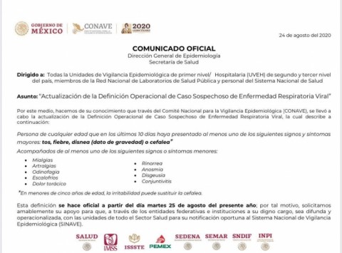 A partir del dia de ayer, la Secretaria de Salud anuncio la nueva definicion que es la siguiente: