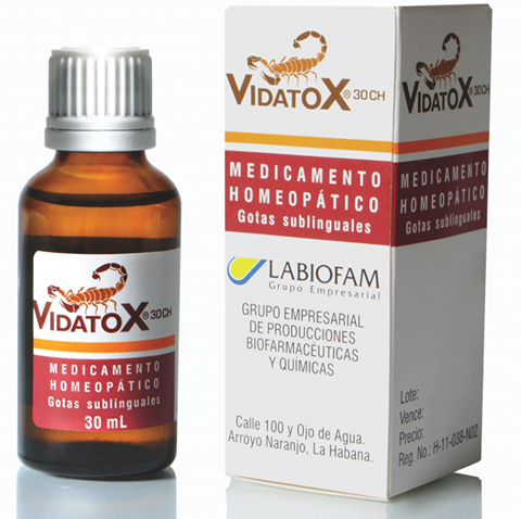 VidatoX® 30CH es un producto natural, homeopático, que ayuda a los pacientes con cáncer y que es producto de la investigación de científicos cubanos quienes lo preparan usando como base el veneno del escorpión azul Rhopalurus junceus que es común en Cuba.
